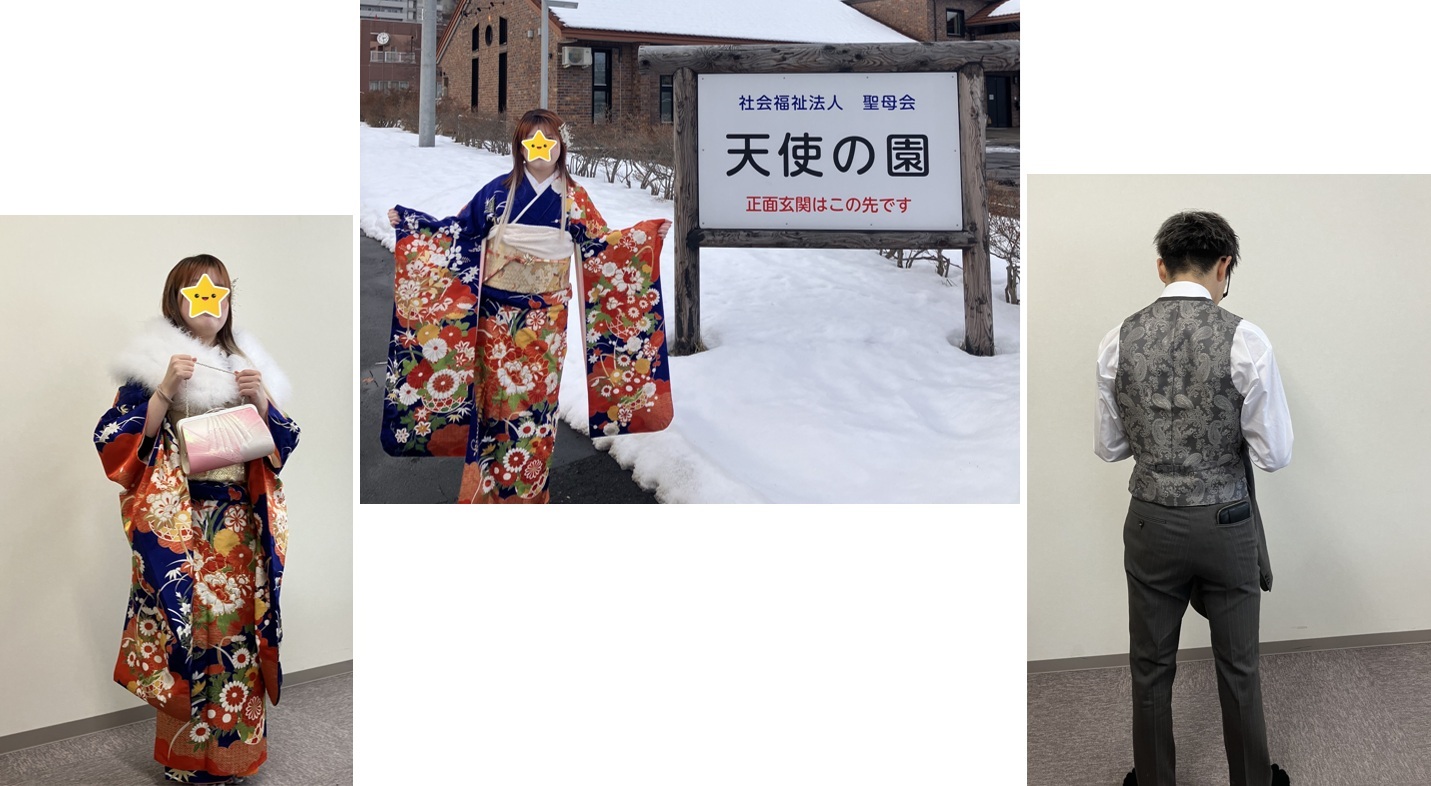 令和8年1月11日、エスコンで開催された二十歳のつどいに、卒園生2名が参加しました。